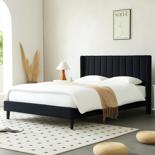 Wingback Velvet Upholstered Platform Bed Frame