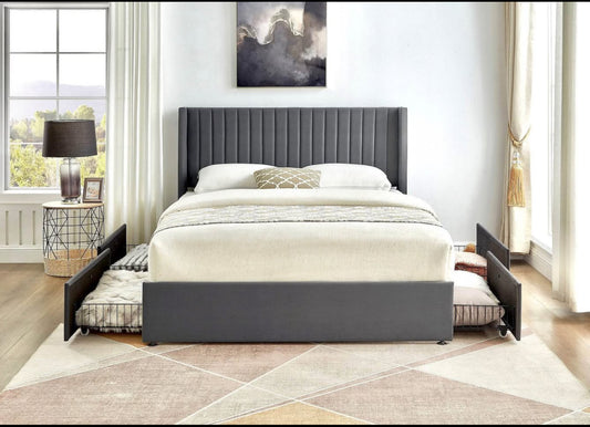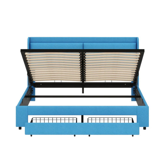 Upholstered Velvet Wingback Storage Platform Bed with 4 Drawers