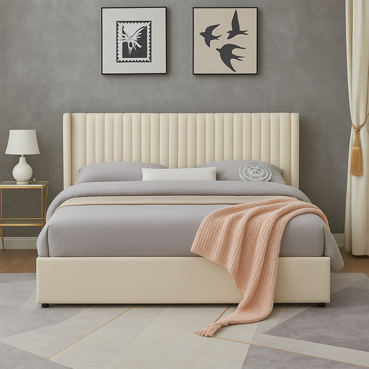 Wingback Upholstered Hydraulic Storage Platform Bed