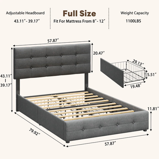 Diamond Tufted Upholstered Platform Bed with 4 Storage Drawers
