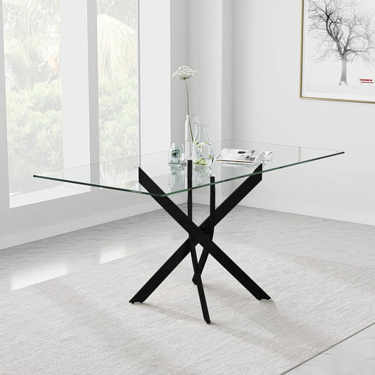 6 Seater Glass Dining Table with Solid Metal Legs
