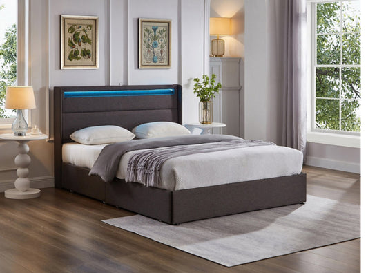 Vegan Leather Upholstered with LED, Charging Station and 4 Drawers