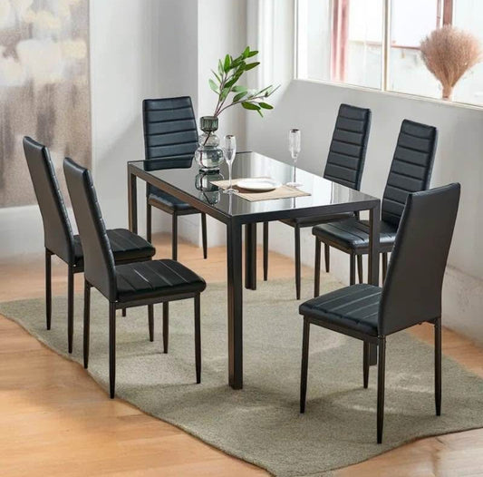 7- Piece Black Dining Table and Chair Set