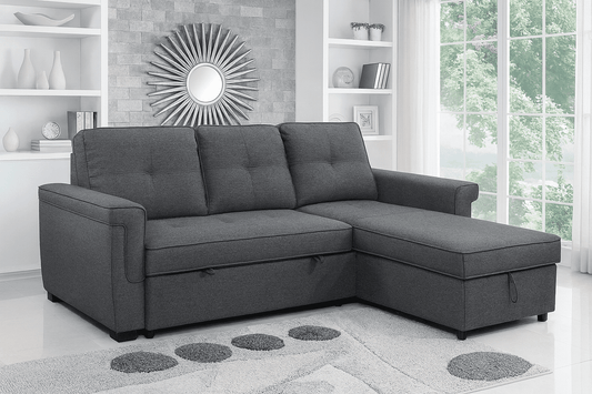 Dark Grey Fabric Sectional Sofa Bed, Reversible Chaise